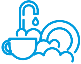 Cuando laves los platos a mano, intenta usar un poco de agua para mantener la esponja jabonosa y húmeda, luego cierra el grifo hasta que estés listo para enjuagar un montón de platos a la vez. Mejor aún, tapa el fregadero o consigue una tina para lavar los platos, para que no tengas que dejar correr el agua.